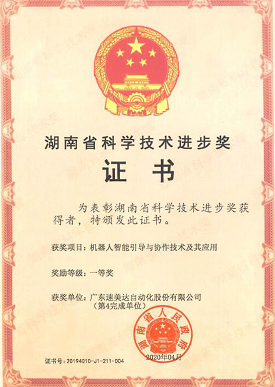 2019年度湖南省科技進步獎(通用項目)一等獎