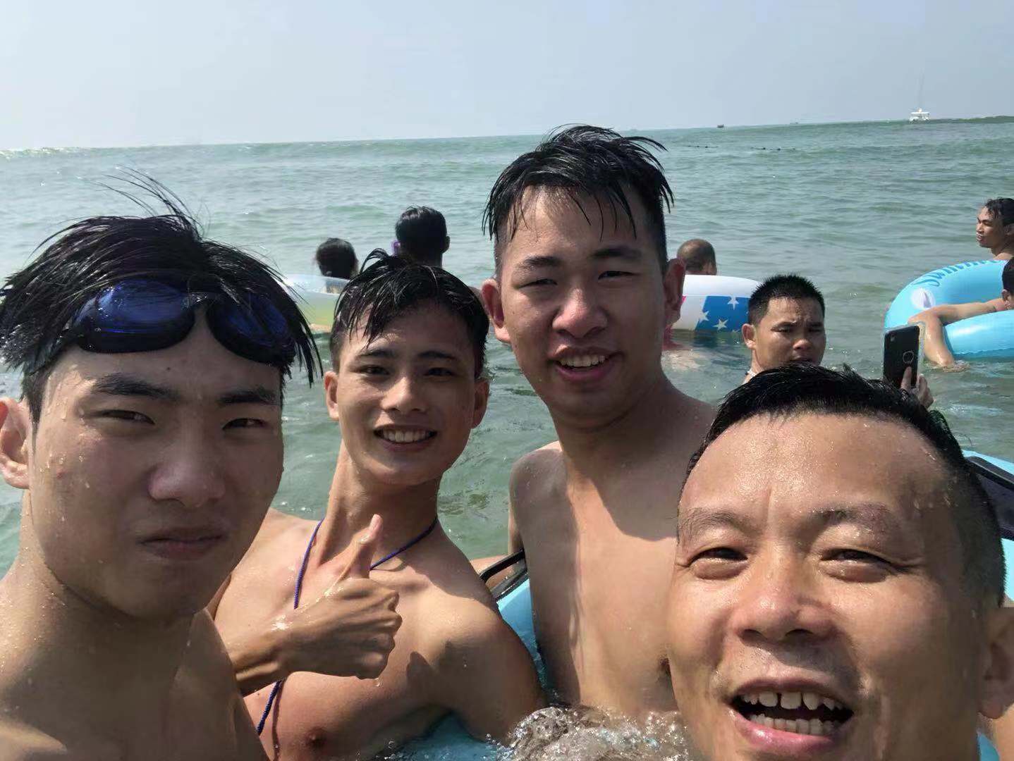 9月7日早,大家吃完早餐就一同前往大角灣沙灘浴場去接受陽光、大海的洗禮,這里還有刺激的水上滑梯項目,也可以沖到海里感受海浪的沖擊,在海里海水撲打到臉上也會感受到海水的咸味。