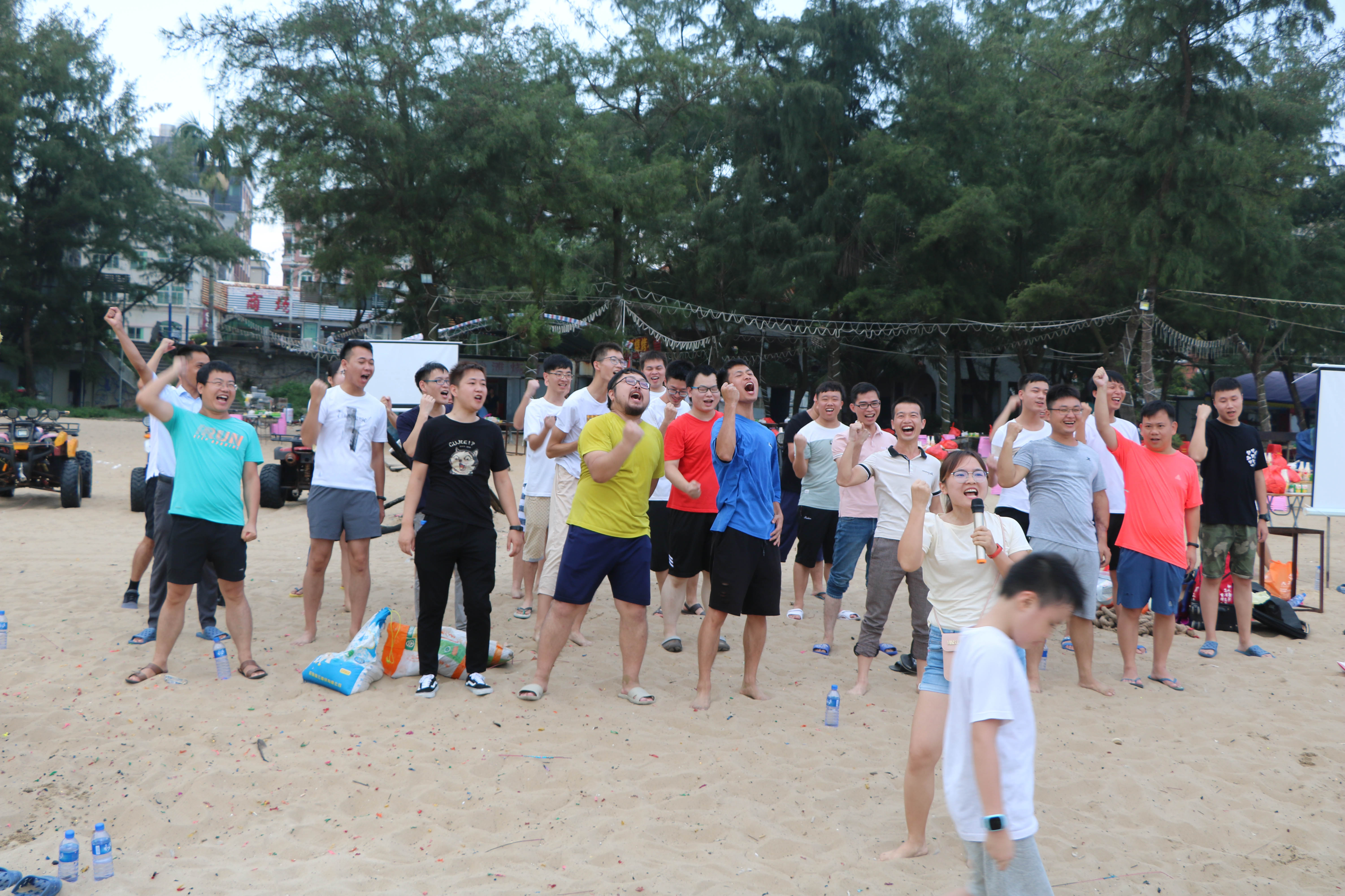 下午大家集合前往沙灘上展開激烈的趣味比賽,大家分為4個小隊,進行對抗,第一個比賽“竹行千里”,這個項目非常考驗每個人的配合默契程度,要用接力的形式讓小球在管子上運動并且運到終點,每個隊伍為了勝利都用了十分的認真功力。