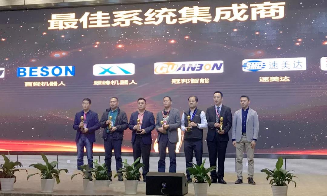 2019年3月23日,由東莞市機(jī)器人產(chǎn)業(yè)協(xié)會(huì)主辦的“新時(shí)代、新篇章--智能制造產(chǎn)業(yè)前瞻大會(huì)暨2018年度東莞市機(jī)器人產(chǎn)業(yè)優(yōu)秀品牌頒獎(jiǎng)典禮”于東莞市松山湖光大We谷產(chǎn)業(yè)園圓滿落幕, 在頒獎(jiǎng)典禮上,速美達(dá)憑借專(zhuān)業(yè)的技術(shù)能力和卓越的市場(chǎng)表現(xiàn),獲得眾多評(píng)選委員會(huì)和市場(chǎng)的高度認(rèn)可,榮獲“最佳系統(tǒng)集成應(yīng)用商”大獎(jiǎng)。