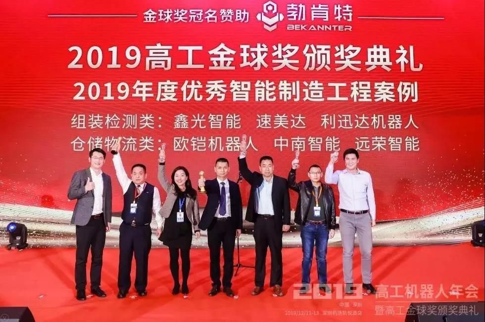 2019年12月13日,速美達(dá)受邀參加了“高工機(jī)器人金球獎(jiǎng)?lì)C獎(jiǎng)典禮”,并且榮幸獲得了“2019年度優(yōu)秀智能制造工程案例金球獎(jiǎng)”,該獎(jiǎng)項(xiàng)是通過(guò)網(wǎng)絡(luò)投票和評(píng)審團(tuán)投票等重重關(guān)卡投選而出,感謝各位的支持!