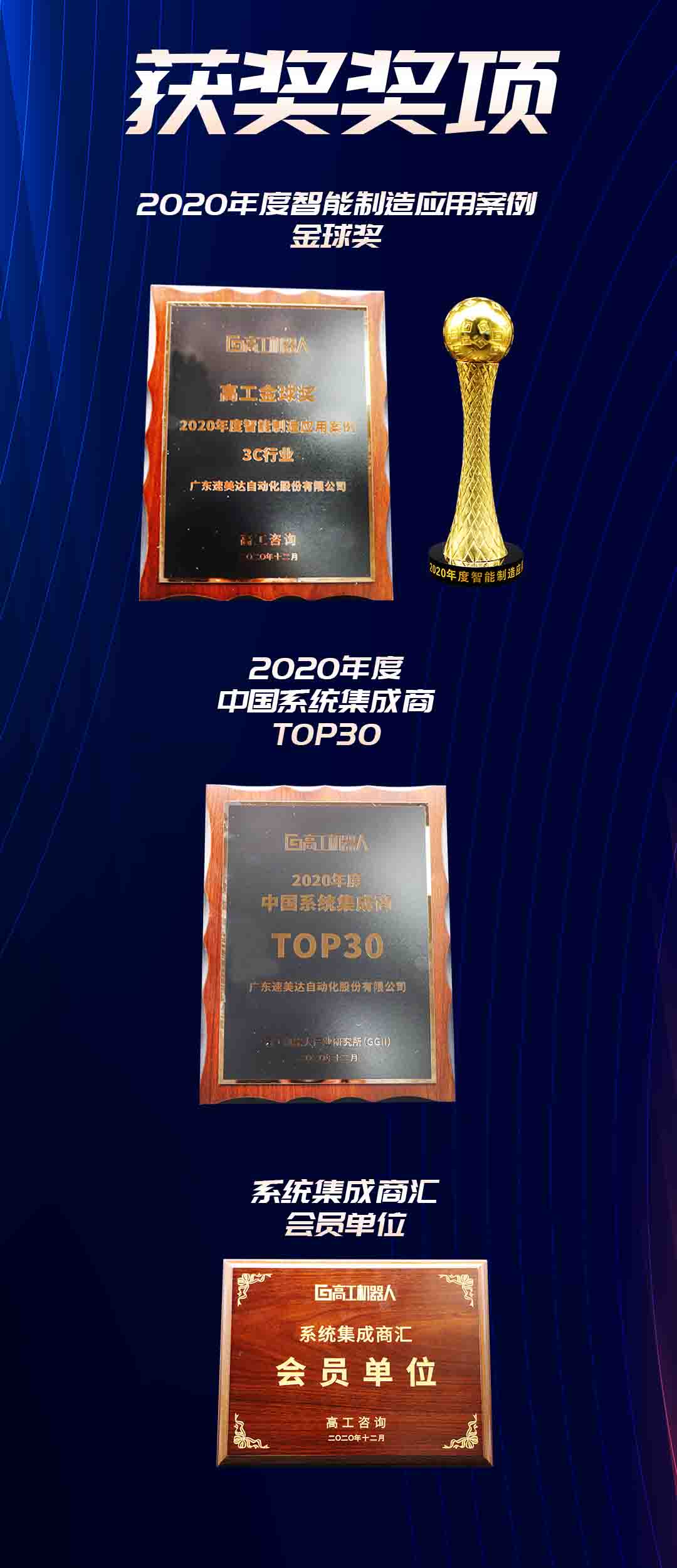 經(jīng)過激烈的投票和專家評審,速美達榮幸獲得2020年度智能制造應(yīng)用案例3C行業(yè)金球獎,被評為2020年度中國系統(tǒng)集成商TOP30,并且成為第一批系統(tǒng)集成商匯會員單位。