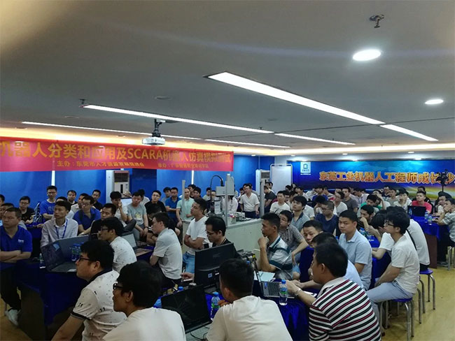 5月19日,速美達(dá)發(fā)言人王冬梅女士在廣東智通培訓(xùn)智能制造學(xué)院進(jìn)行了題為《機(jī)器人分類和應(yīng)用及SCARA機(jī)器人仿真模擬測試》的技術(shù)沙龍培訓(xùn),現(xiàn)場講解了SCARA工業(yè)機(jī)器人的分類、系統(tǒng)集成應(yīng)用案例以及SCARA機(jī)器人仿真模擬測試的前沿知識,并分享了視覺定位、測試、貼合、打磨、螺絲擰緊等項目經(jīng)驗,讓參會者收獲滿滿技術(shù)干貨。