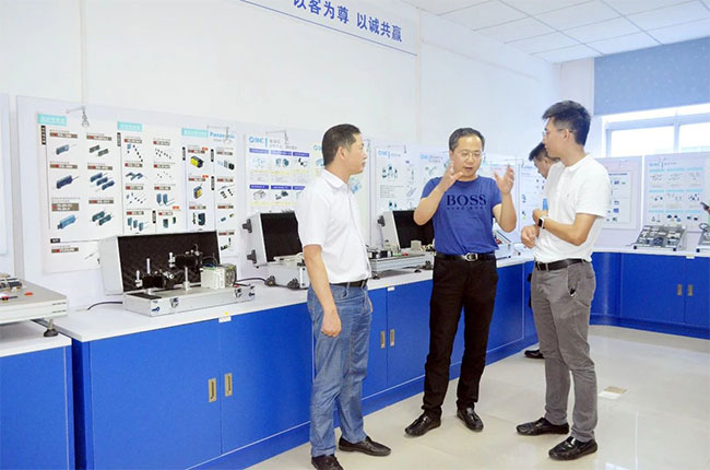 各會(huì)長(zhǎng)單位在張平良副總經(jīng)理的陪同下,參觀了速美達(dá)智能制造產(chǎn)品展示廳,介紹了展廳展示的優(yōu)勢(shì)技術(shù)產(chǎn)品,與大家現(xiàn)場(chǎng)交流技術(shù)心得。